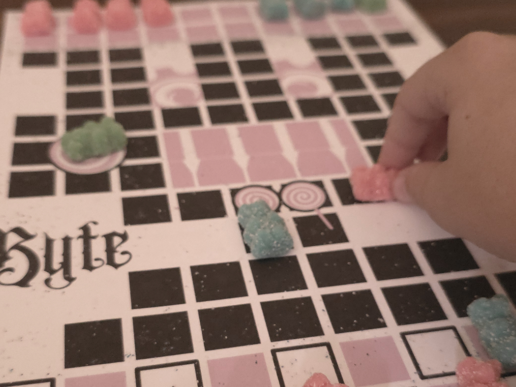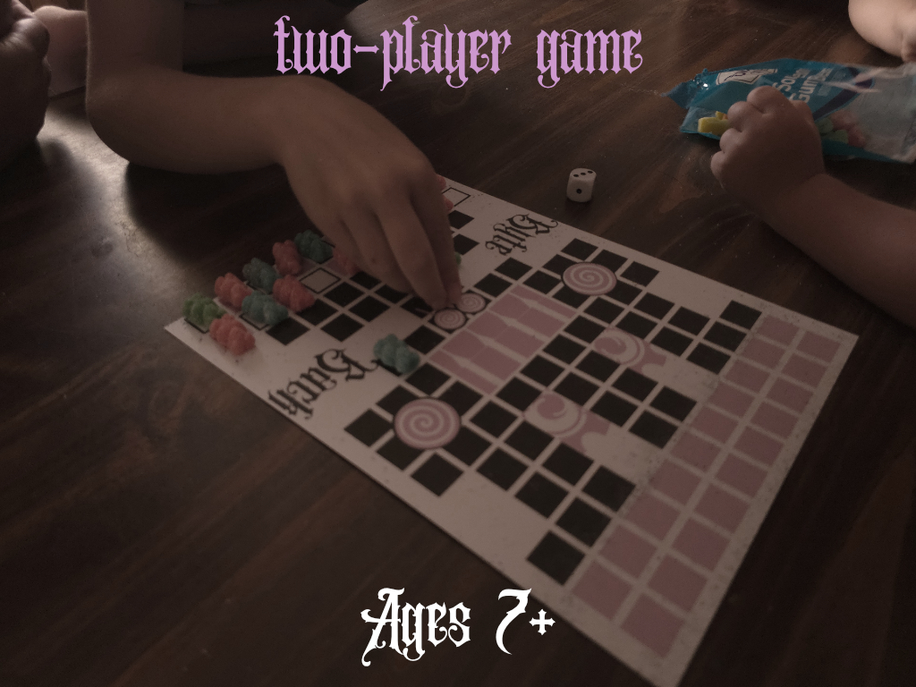 This is a fast, 2-player board game where you’re trying to move your candy pieces to safety while your opponent does everything they can to send them back.